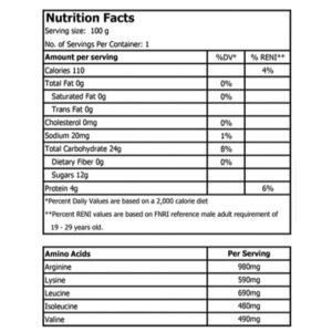 Water, Sugar Stabilizer (Dextrin, Carob Bean Gum, Potassium Chloride), Amino Acid (BCAA (L-Leucine, L-Isoleucine, L-Valine), L-Arginine, L-Lysine Hydro-Chloride), Sweetener (D-Sorbitol, Eryhtritol), Acidity Regulator (Citric Acid, Sodium Citrate), Carrageenan (Gelling Agent), Artificial Apple Flavor