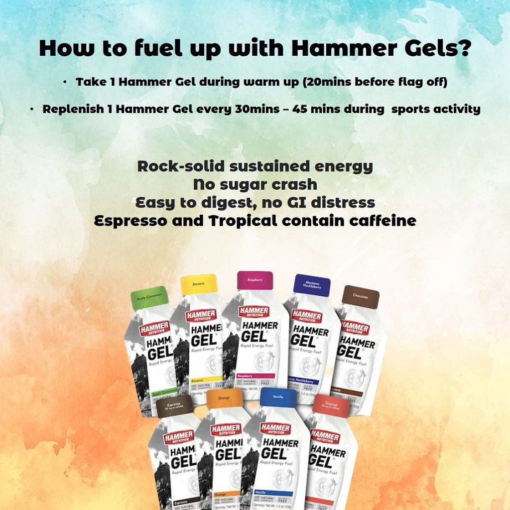 Use as a secondary calorie source during exercise lasting more than 3 hours; it’s time to switch to Perpetuem® as your primary fuel source. However, Hammer Gel can be combined with Perpetuem or any other Hammer fuel during prolonged exercise for variety and to avoid flavor fatigue. Just be sure to count calories from all sources to avoid over-consuming.