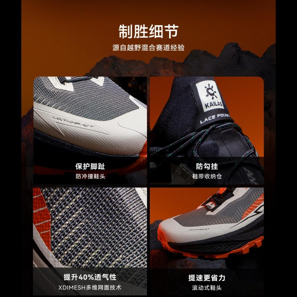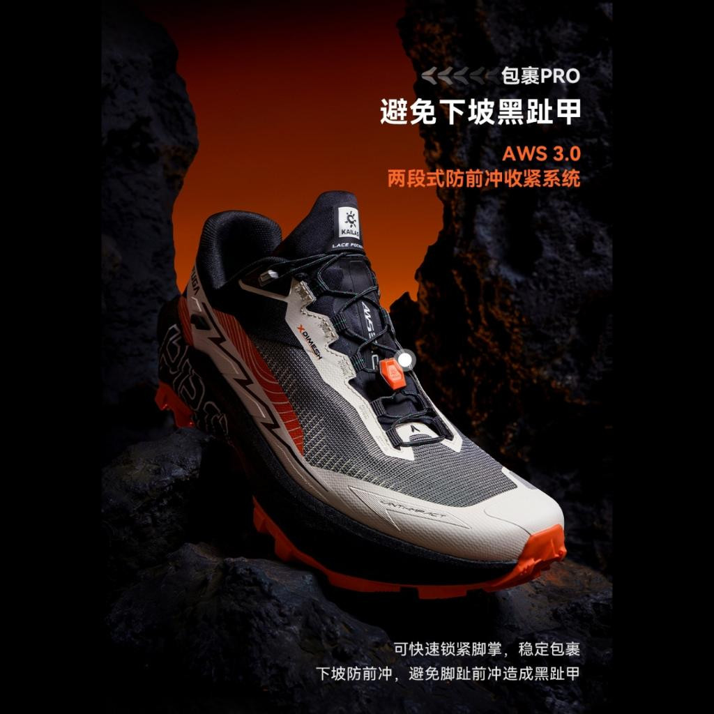 6. KAILAS AWS (Adjust Whole Sole) 3.0™ two-section lace tightening system. The first buckle helps to minimize impact to toes on down-hills and the second buckle provides stronger wrapping and stability