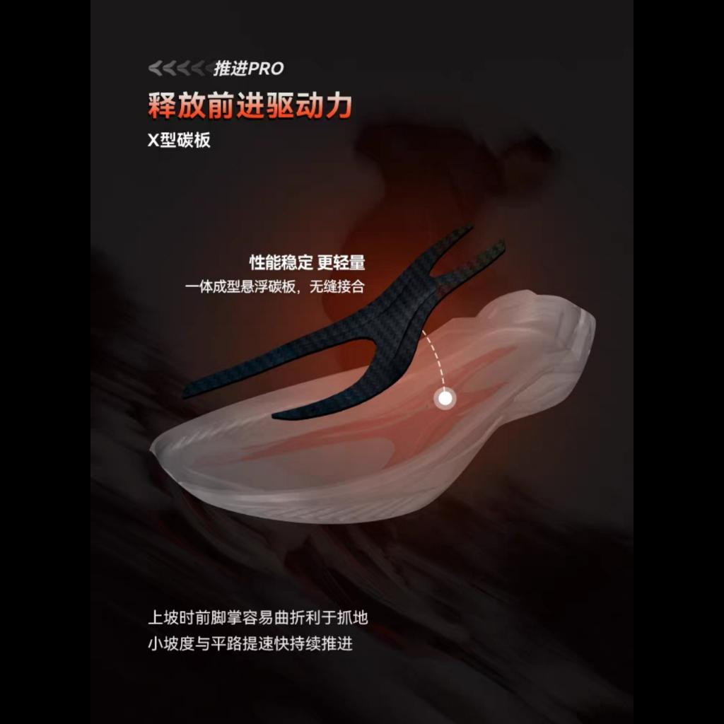 4. Seamlessly molded X-shaped carbon fiber plate reduces energy consumption and helps to speed up.