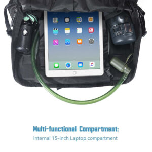 ✅Large opening main compartment, inner pocket for valuables, umbrella pocket, anti-vibration 15'' laptop pocket (can also be used as 1-2L water bladder pocket)