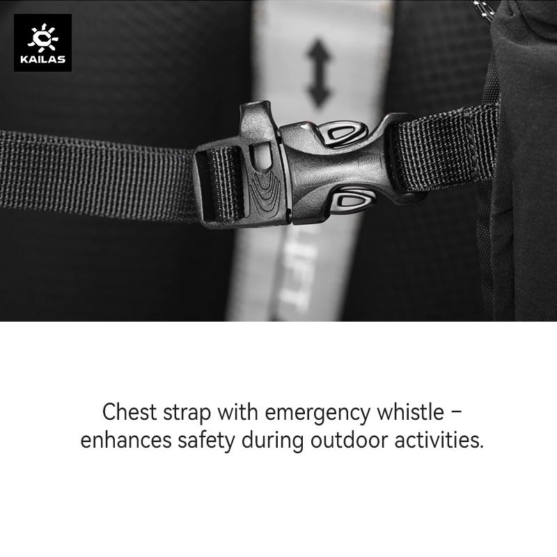 – Chest strap with emergency whistle – enhances safety during outdoor activities.