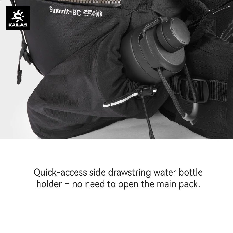 – Quick-access side drawstring water bottle holder – no need to open the main pack.