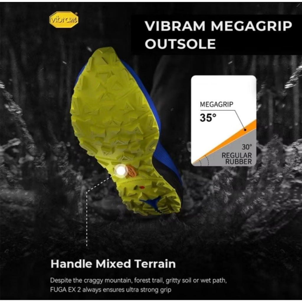 ✅ Multi-directional triangle lugs on forefoot provide powerful grip on uphill trails