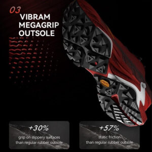 ✅ Vibram LITEBASE Outsole Reduces 30% of the overall sole weight through a reduction of the sole thickness by 50%, while maintaining Vibram quality in grip, traction and durability.