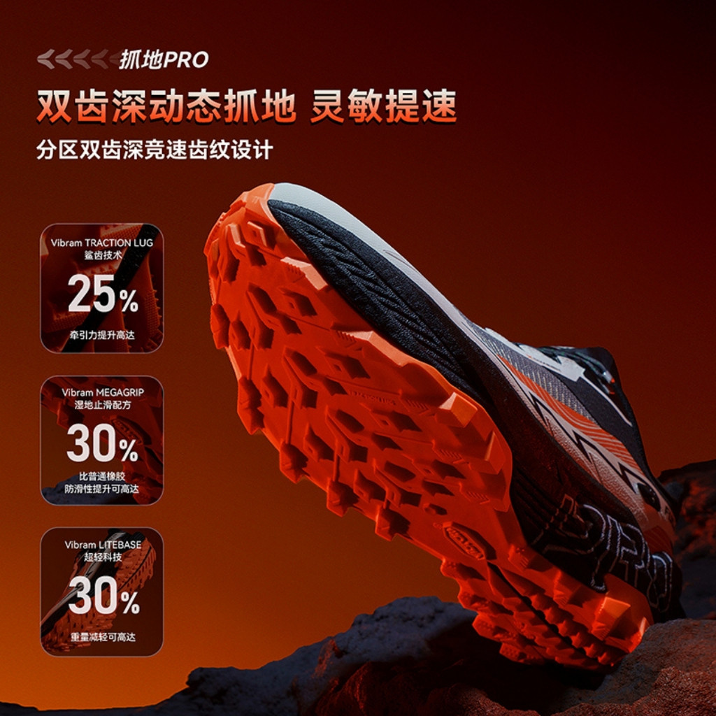 1. Vibram MEGAGRIP rubber outsole offers 30% more grip than regular rubber soles. LITEBASE technology reduces weight by 30%. Traction Lug technology improves traction by 25%
