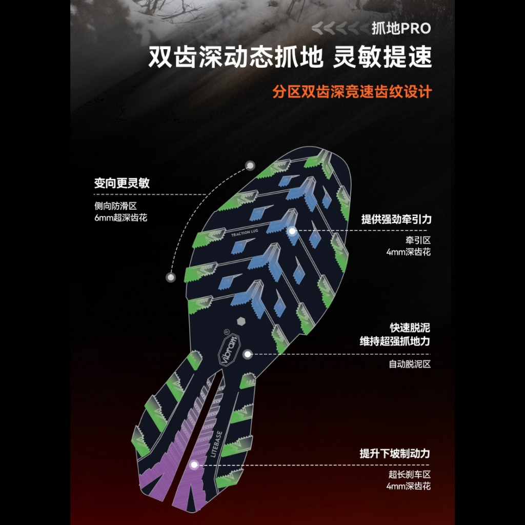 2. Five separate zones (4/6mm lug zones, 4mm lateral anti-slip zones, the traction zone and the braking zone) for all-round and more precise grip